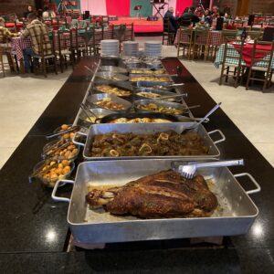O jantar inicia com risoto de cordeiro, brusquetas ao pomodoro, porpetas, tábuas de frios, ossobuco à moda Milão, 4 massas (Fetuccine ao molho funghi, Espaguette, Tortéi, Nhoque aos 4 queijos). Entre muitas outras delícias, molhos, antepastos, sobremesas e um leque de vinhos finos para acompanhar.